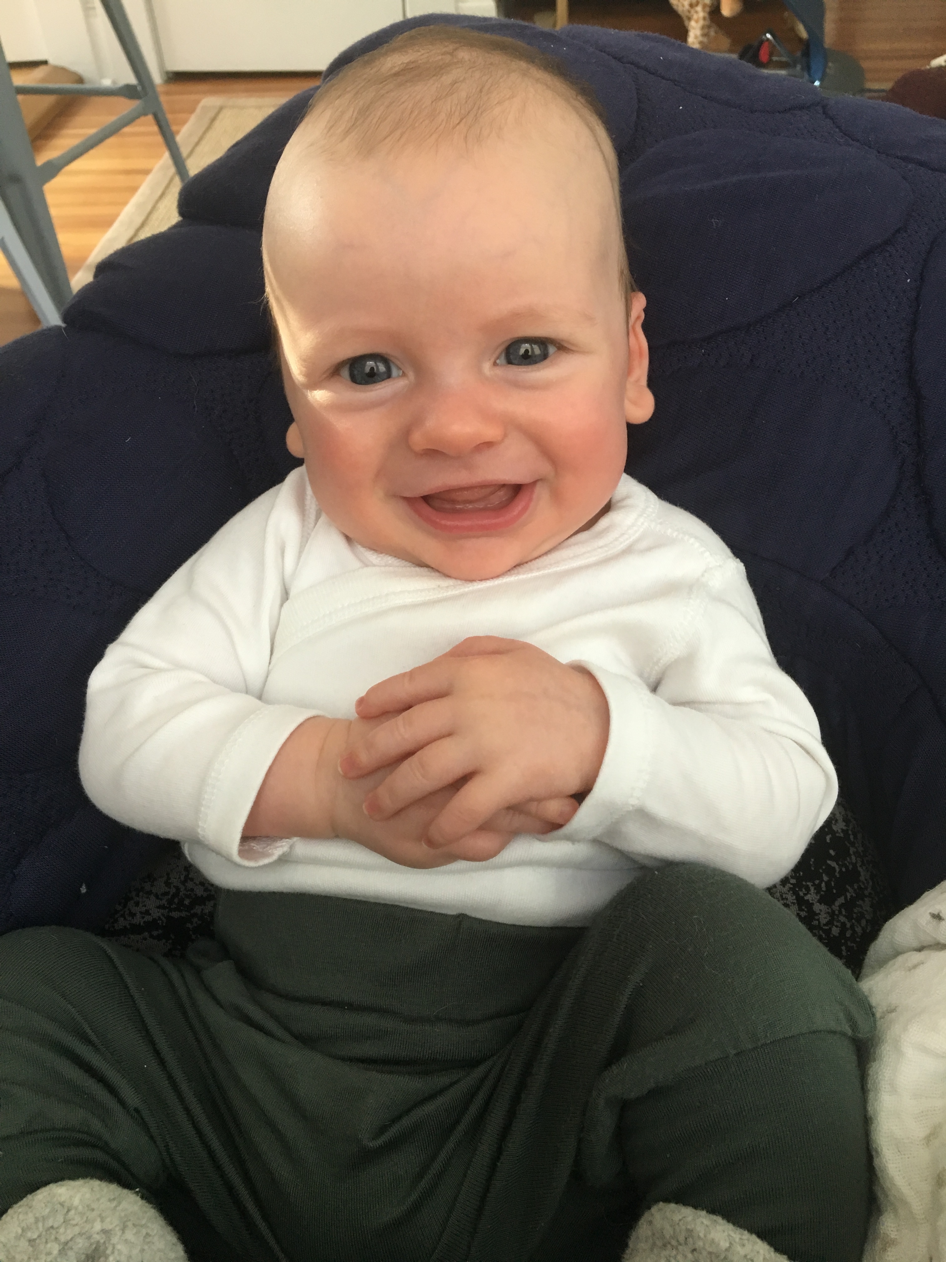 Sooner or later, you’ll probably find your baby happily sucking on his toes. Yes, this is strange, but it’s still an important milestone. His hands aren’t very coordinated yet, but he’s jonesing to learn more about the objects around him. So he explores things by putting them in his mouth—including his own feet, once he’s found them.